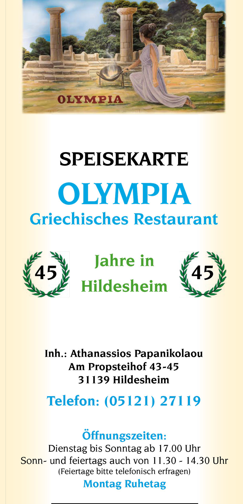 Herzlich Willkommen im griechischen Restaurant OLYMPIA - seit 45 Jahren in Hildesheim.